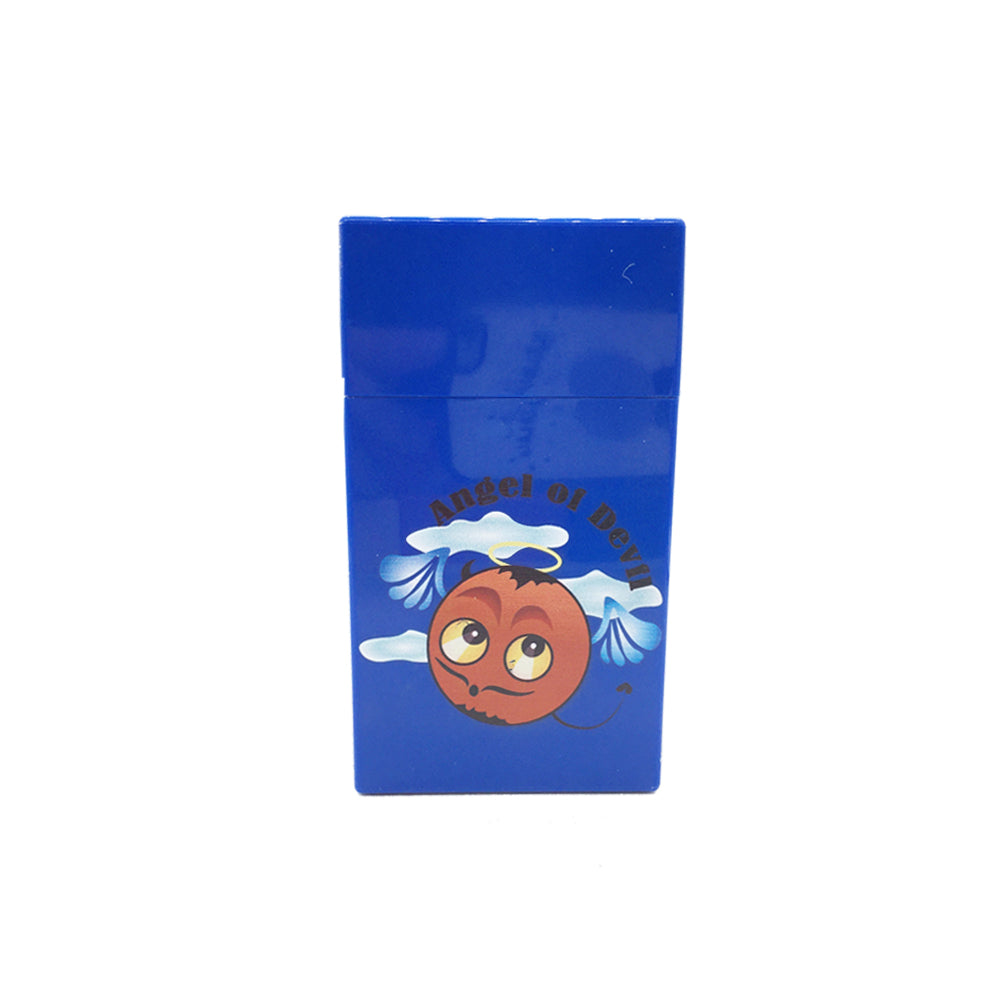 Assorted devil graphics, plastic cigarette cases with push-to-open lid. Fits King sized cigarettes.