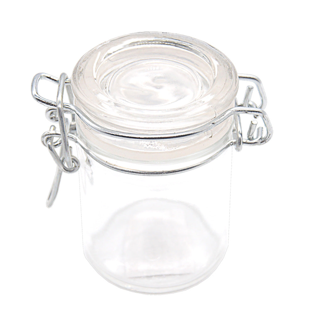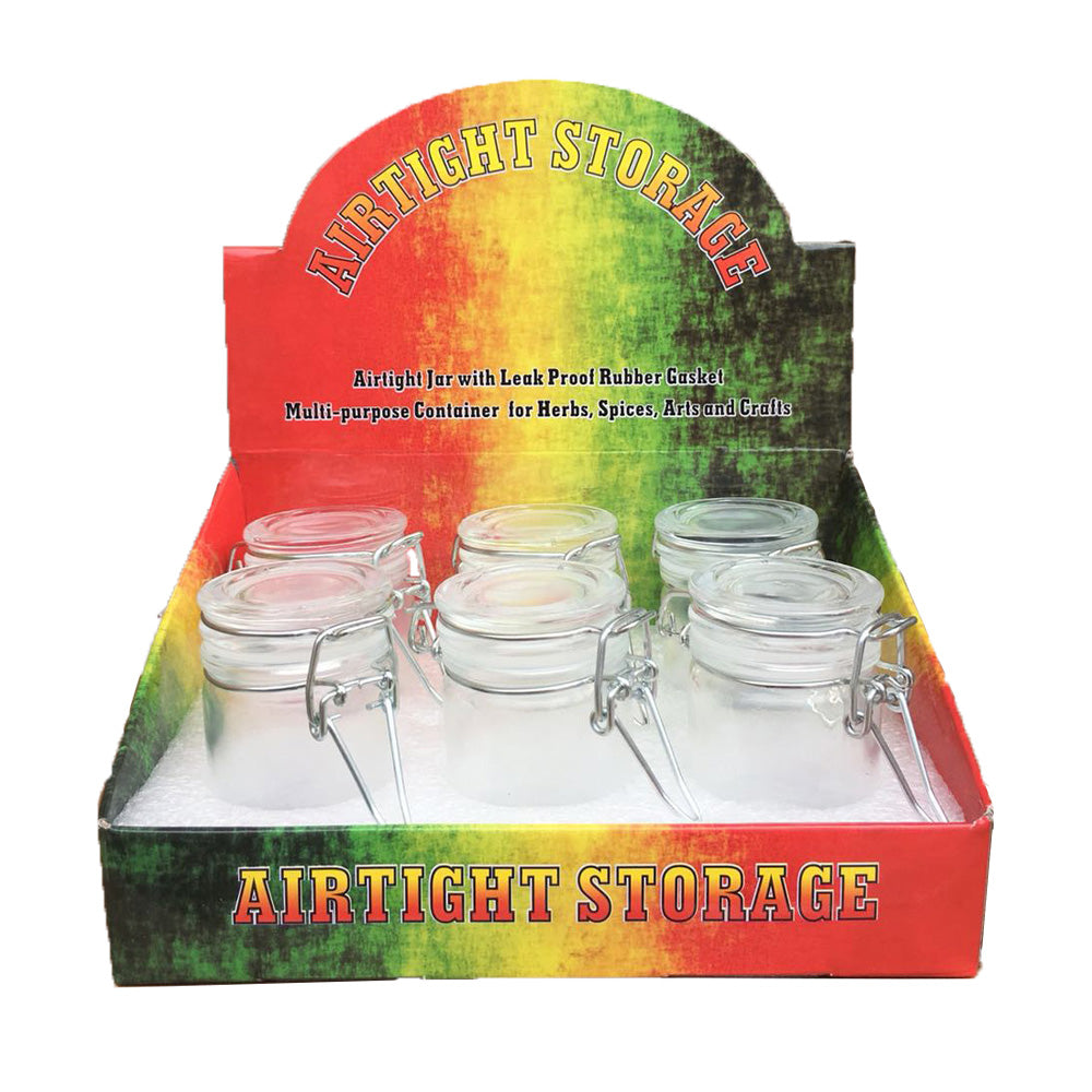 Airtight glass storage containers with latching lids. Use these jars to keep your herbs, coffee, or other ingredients fresh.