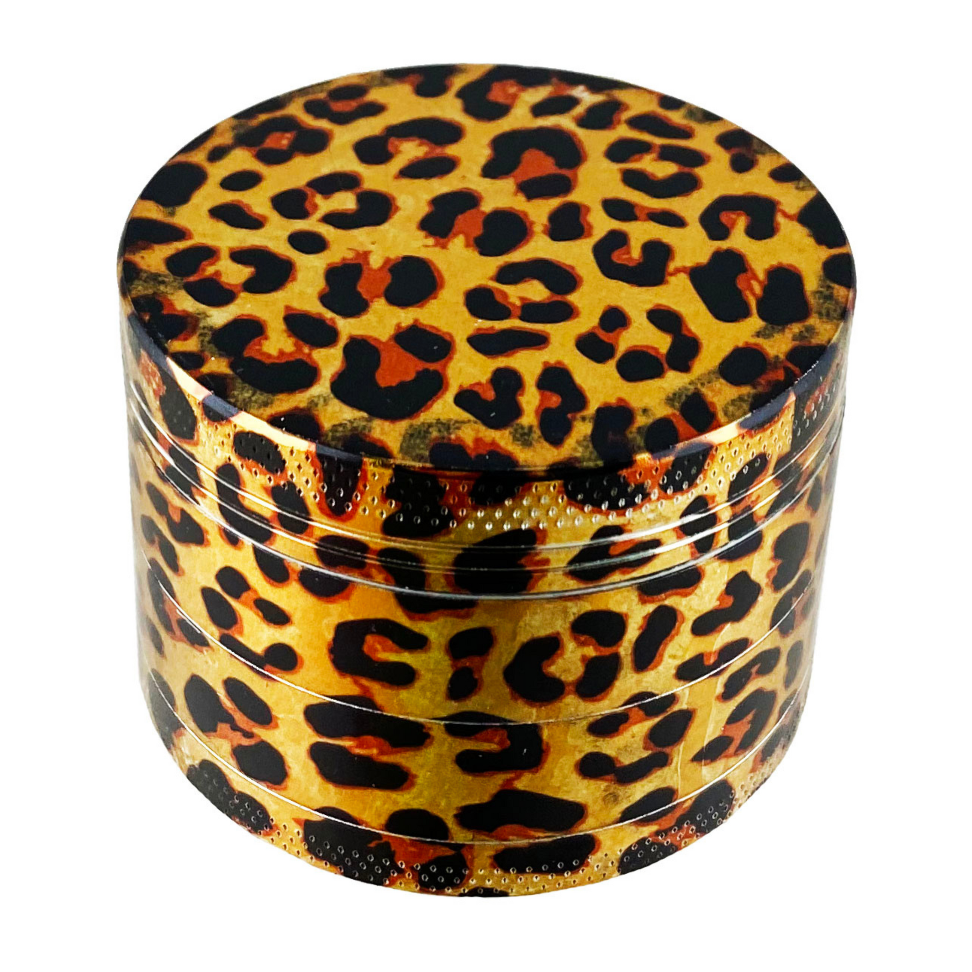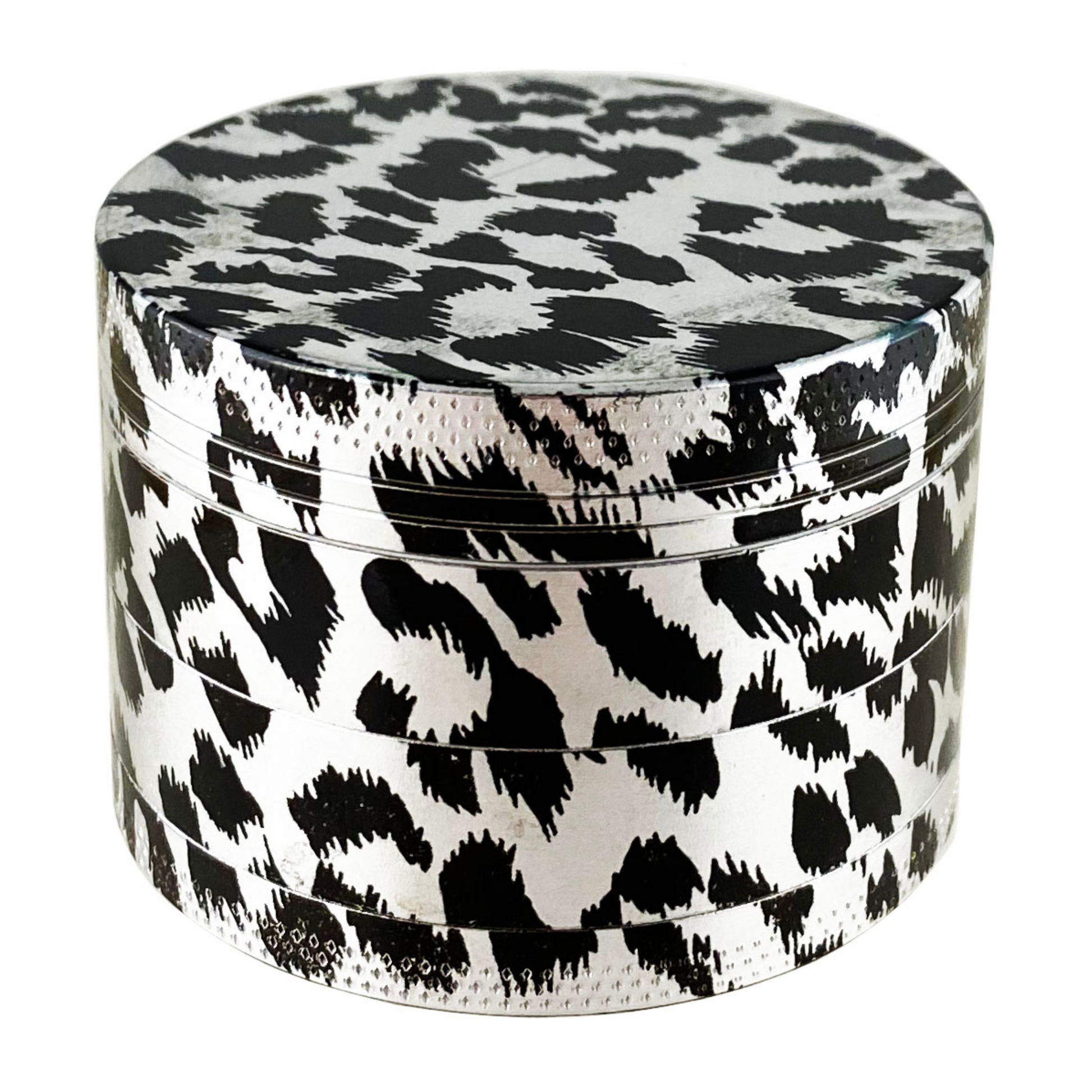 Lightweight aluminum grinder with laser printed wood grain or animal print graphics.