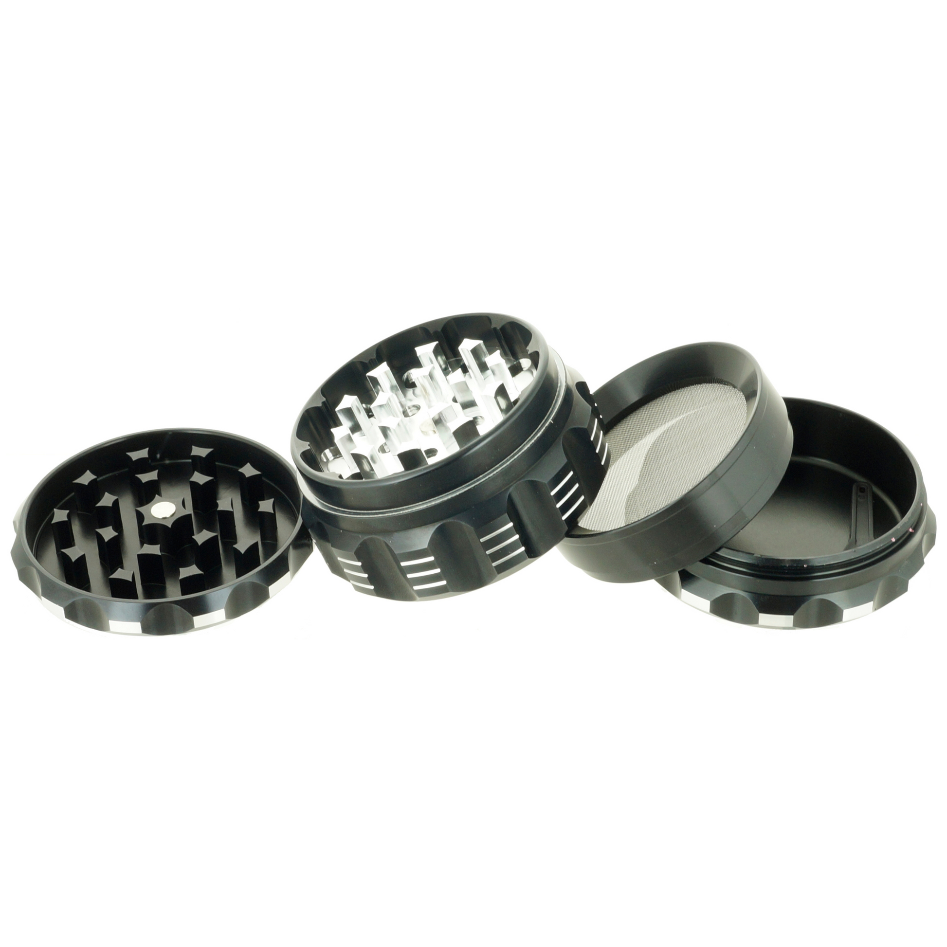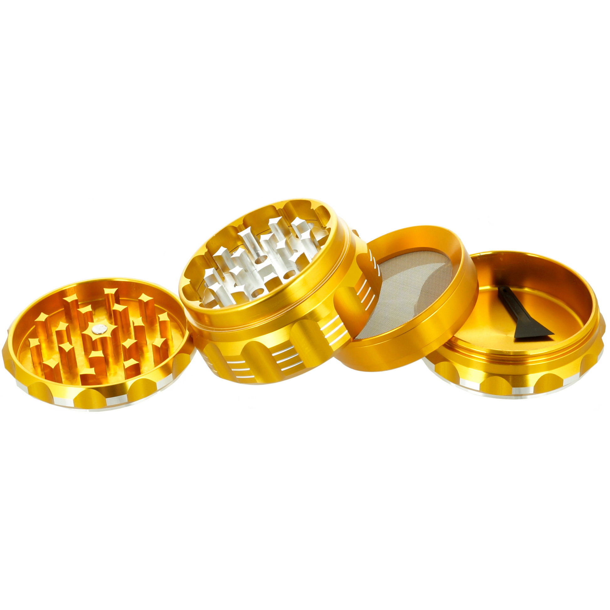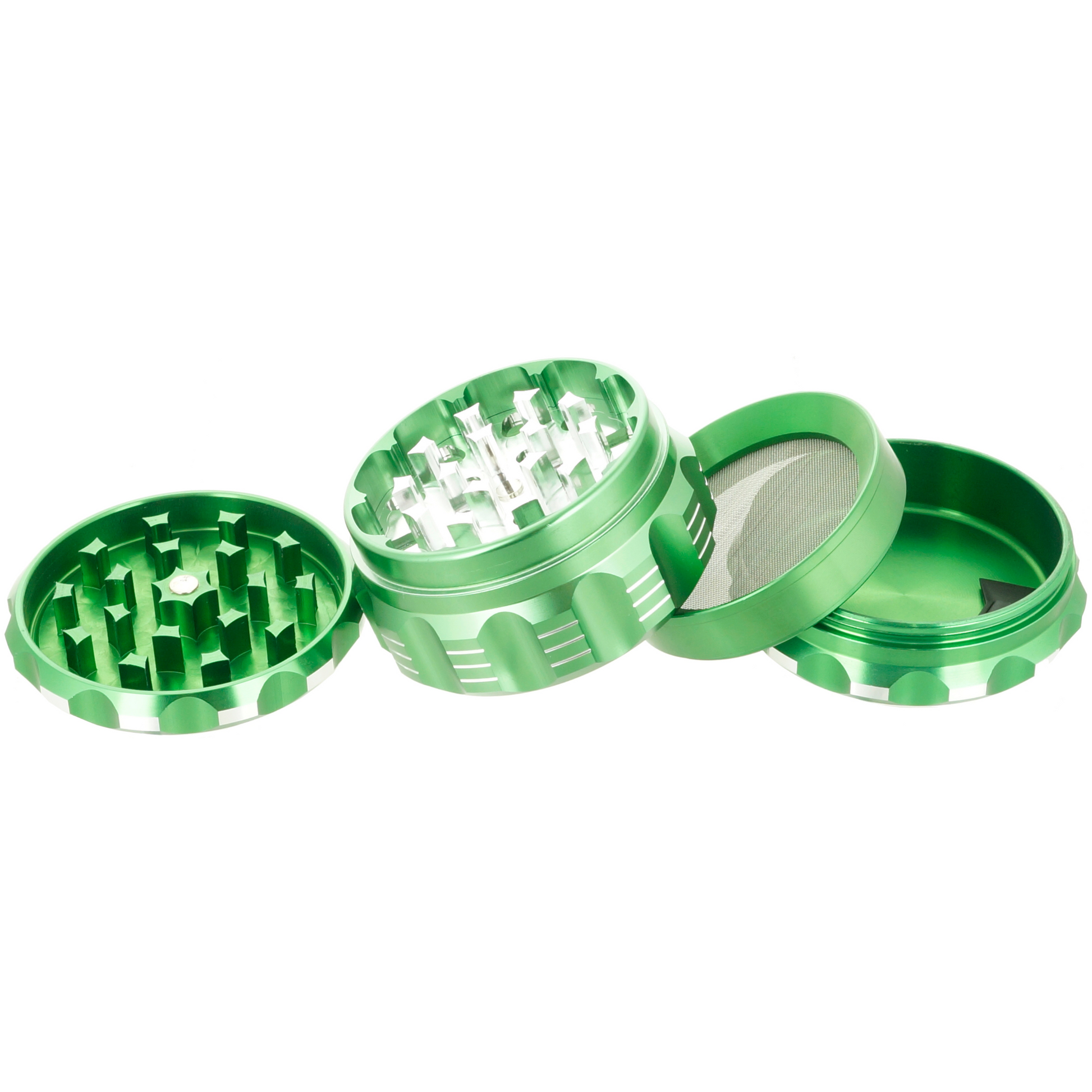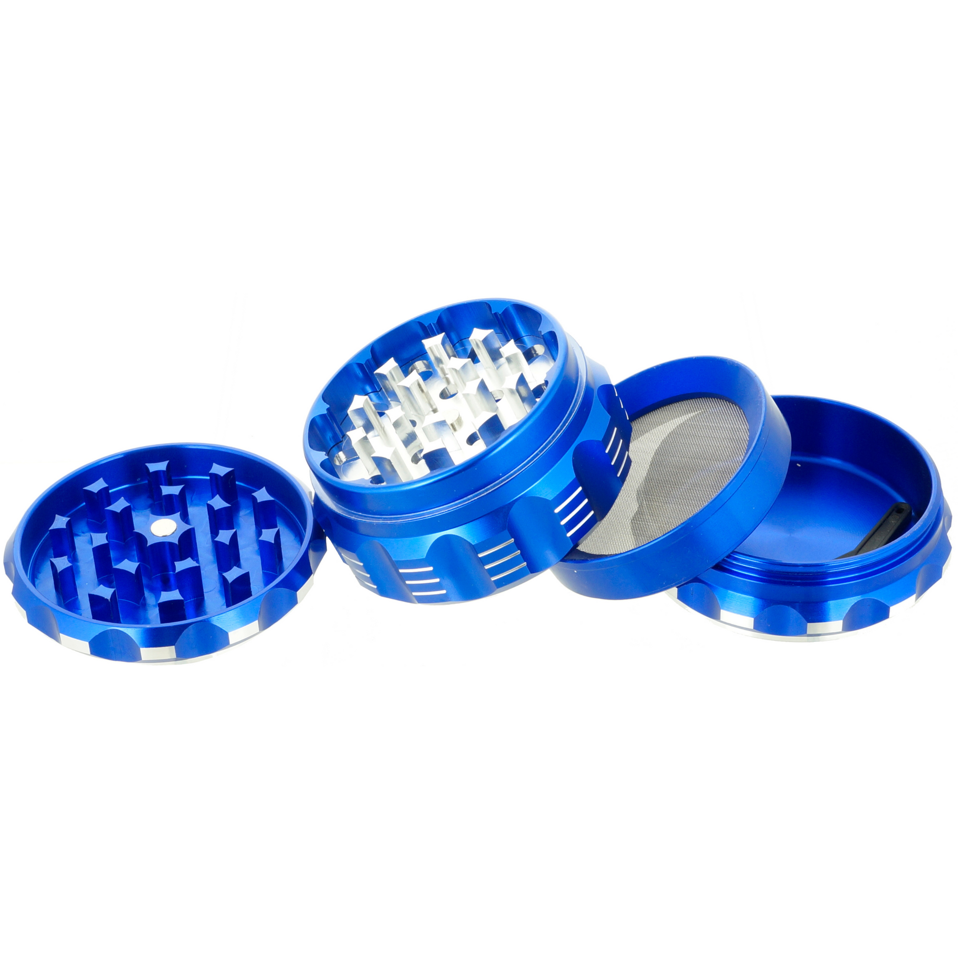 When it comes to intentional design, the Viking Axe Steampunk grinder overshoots this criteria. The groves from the gear-like "Steampunk" inspired design makes it super easy for the user to grip and grind. It comes with 4 parts and 5 color options.  Available colors: black, blue, gold, green, red.