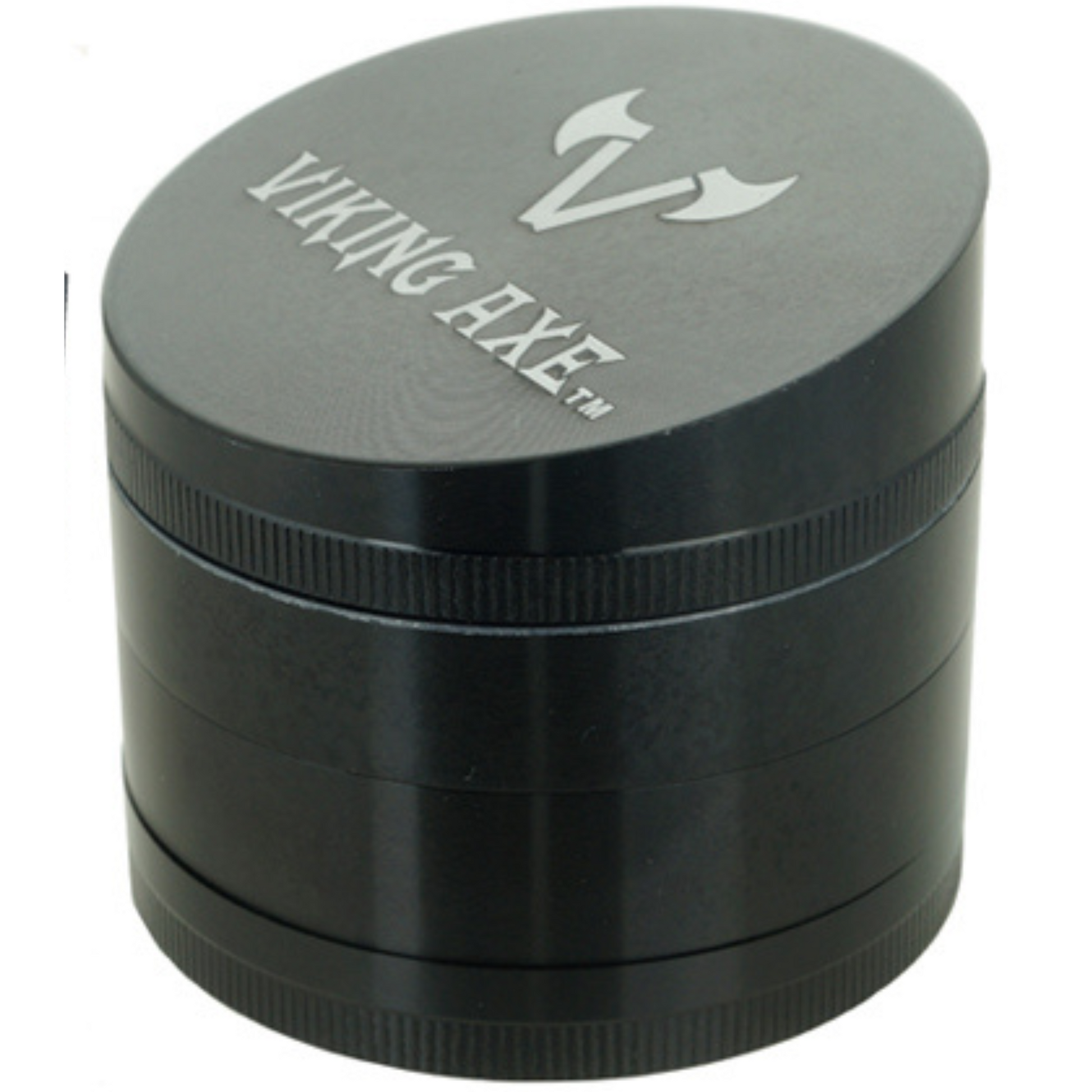 Viking Axe Premium Slant Top Grinder. This 63mm aluminum grinder comes with 4 parts and 3 color options.  Available colors: black, gun metal, rasta.