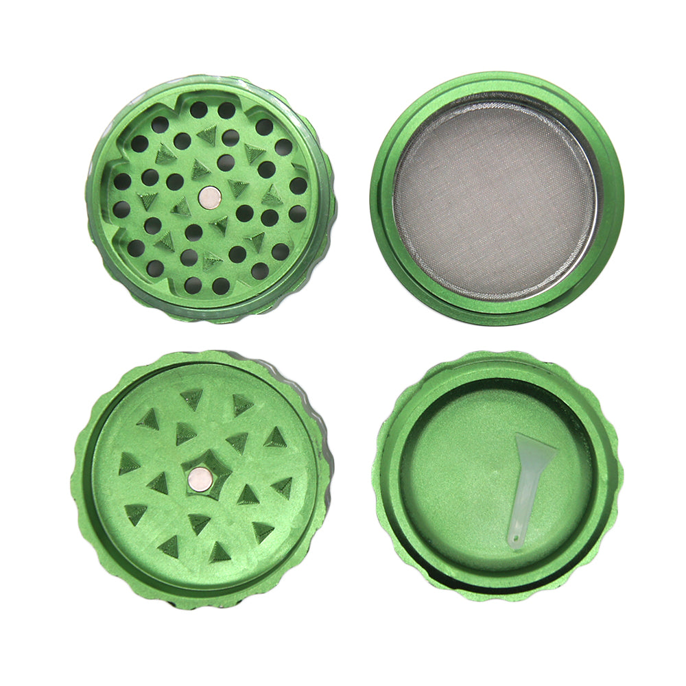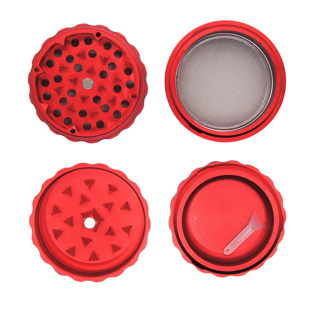 Viking Axe Premium 2-in-1 Ashtray Grinder. Sharp pyramid-shaped grinding teeth. Convenient ashtray on top. Easy grip design for efficient grinding. This aluminum grinder comes with 4 parts and comes in black, blue, green, and red.